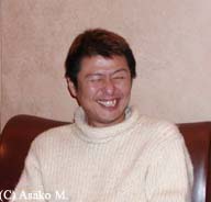 インタビュー中、企画記事「ジャンベ魂」の原稿執筆を快く引き受けてくださった佐藤さん。表現するということへの情熱を秘めた、自然体でありながら、とてもエネルギッシュな方でした。(京王プラザホテルにて 2002.11.9)